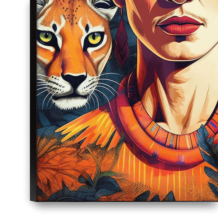Bestelle dieses Popart-Wandbild Frida und wilde Katzen von JBJart Justyna Jaszke als Reproduktion auf Leinwand, Alu-Dibond, als Poster, Fototapete oder Acrylglasbild.