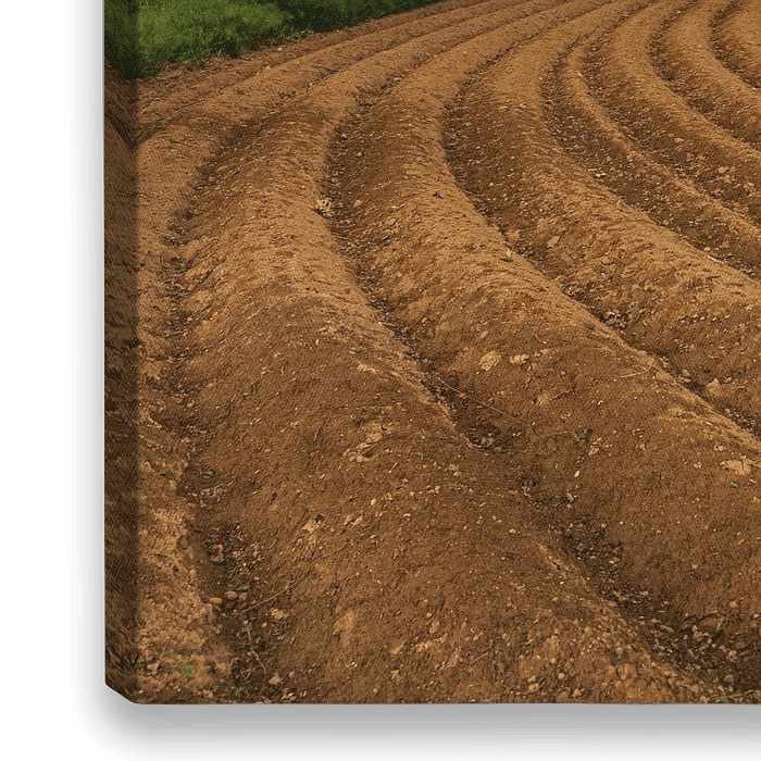 Ein Foto der Landschaft in der niederländischen Provinz Südlimburg. Wir sehen die Wölbung des Landes. Im Frühjahr wird das Land für den Anbau von Feldfrüchten, darunter der berühmte Spargel, bestellt,