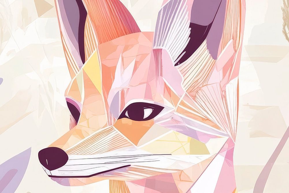 In sanften Pastelltönen erstrahlt ein stilisierter Fuchs, dessen neugieriger Blick in die Ferne schweift. Die harmonisch geschwungenen Linien und botanischen Elemente umrahmen ihn perfekt und verleihen dem Bild eine erfrischende Note. Dieses kunstvolle Werk eignet sich hervorragend für ein Wohnzimmer, wo es eine fabelhafte, einladende Atmosphäre schafft.