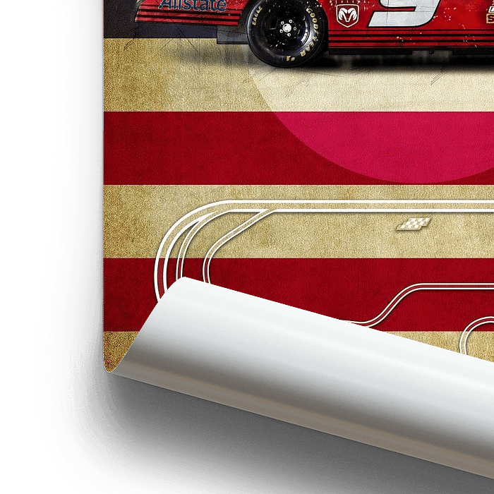 Illustration aus einer Reihe legendärer Nascar-Motorsport-Rennstrecken und Rennwagen.