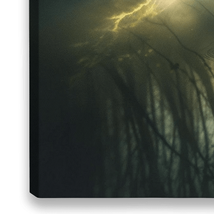 Bestelle das digitale Kunst Bild Geheimnisvolles Glühen im mystischen Moortümpel von artefacti als Reproduktion auf Leinwand, Alu-Dibond, als Poster, Fototapete oder Acrylglasbild.
