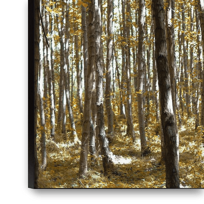 Bestelle dieses Landschafts-Wandbild Gelber Herbstwald von Miranda van Hulst als Reproduktion auf Leinwand, Alu-Dibond, als Poster, Fototapete oder Acrylglasbild.