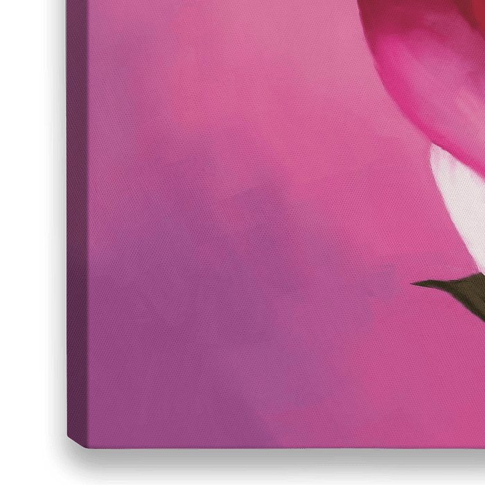 Gemälde einer Rose in wunderschönen Farben, nämlich Rosa, Rot, Violett und Weiß. Das digital gemalte Bild ist in der Malmesser-Technik gemacht mit einer sichtbaren Leinwandtextur.