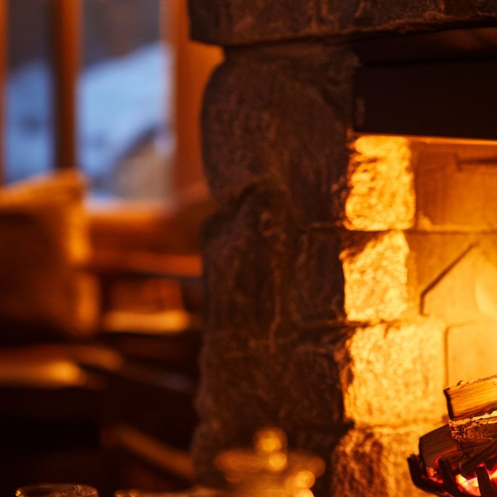 Ein sanft flackerndes Feuer wirft warmes Licht auf raues Steinzeug und schafft eine einladende Atmosphäre. Die Gemütlichkeit wird durch die zarten Schattenspiele der Kerzen und die behagliche Einrichtung verstärkt. Draußen schimmert der Schnee, während drinnen Ruhe und Geborgenheit herrschen – ein perfekter Ort, um dem Alltag zu entfliehen.