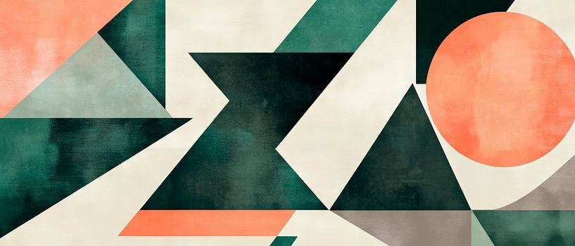 Farbenfrohe, geometrische Formen tanzen harmonisch über eine sanfte, cremefarbene Leinwand und verleihen jedem Raum eine moderne Note. Die Kombination aus tiefem Grün, warmem Orange und schimmernden Beige schafft eine einladende Atmosphäre. Ideal für ein stilvolles Wohnzimmer oder ein kreatives Büro, inspiriert dieses Kunstwerk zu…