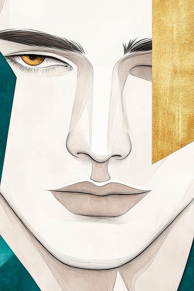 Ein faszinierendes Spiel aus geometrischen Formen und sanften Farben schafft eine moderne Aura. Die einnehmenden Augen und die markante Gesichtszüge ziehen sofort die Blicke auf sich und verleihen jedem Raum eine künstlerische Note. Ideal für ein Wohnzimmer oder ein kreatives Büro, um Inspiration und Stil zu fördern.