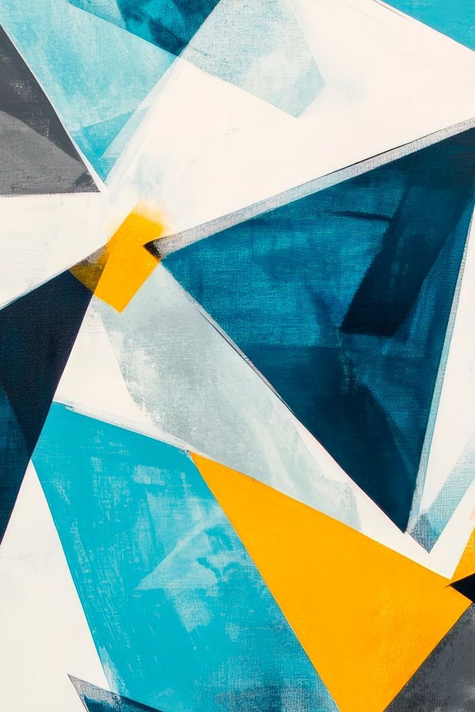 Schillernde Dreiecke in lebhaftem Blau, strahlendem Gelb und sanftem Grau tanzen auf einer hellen Leinwand. Diese dynamische Komposition bringt Energie und Stil in jeden Raum. Perfekt für das Wohnzimmer, wo sie Gespräche anregen und eine inspirierende Atmosphäre schaffen kann. Ein visuelles Highlight, das den Raum erhellt!