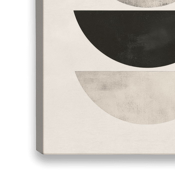 Die harmonische Komposition aus geometrischen Formen entfaltet eine faszinierende Balance. Ein schwarzer, majestätischer Kreis schwebt über sanft geschwungenen Halbrunden in erdigen Grautönen. Diese minimalistische Anordnung vermittelt Ruhe und zeitlose Eleganz, während die unterschiedlichen Texturen eine subtile Tiefe schaffen. Ein visuelles Spiel der Formen, das zum Staunen einlädt.