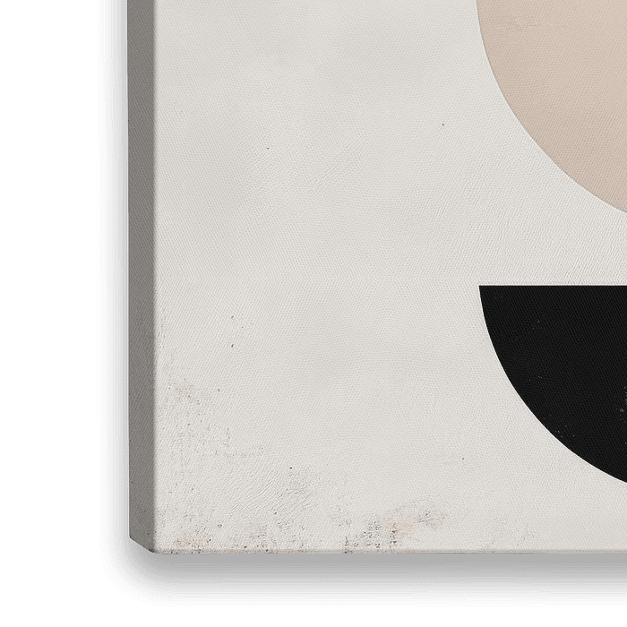 Drei harmonische Halbkreise in kräftigen Schwarz- und sanften Beigetönen tanzen auf der strukturierten, hellen Fläche. Ihre klare Geometrie strahlt Ruhe und Balance aus, während das Spiel von Licht und Schatten eine subtile Tiefe erzeugt. Diese Komposition lädt zum Innehalten und Nachdenken über Formen und Kontraste ein.