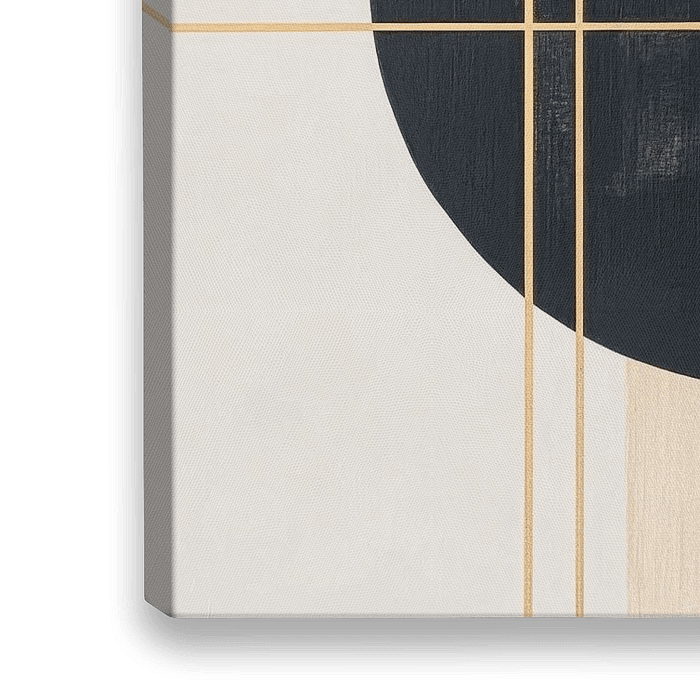 Ein Zusammenspiel aus geometrischen Formen und harmonischen Kontrasten fängt den Blick ein. Der kräftige schwarze Kreis, umrahmt von sanften Farbtönen und filigranen Linien, verleiht jedem Raum eine moderne, künstlerische Note. Besonders schön kommt dieses Kunstwerk im Wohnzimmer zur Geltung, wo es zum Nachdenken und Verweilen einlädt.