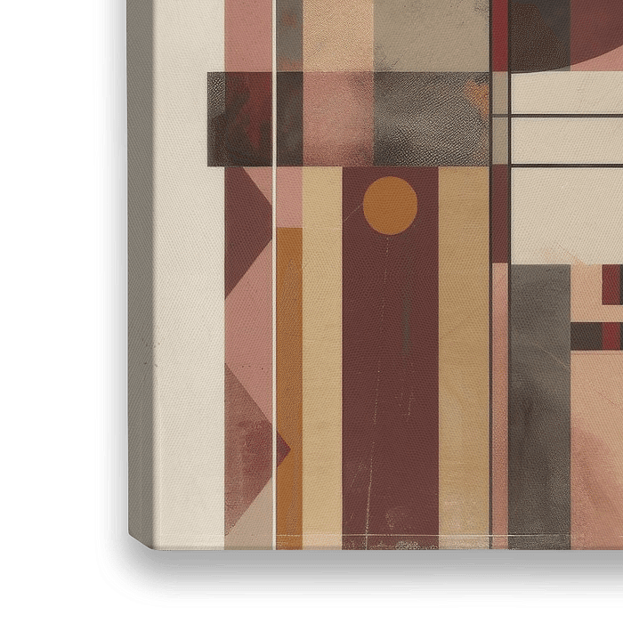 Dieses raffinierte Kunstwerk spielt mit geometrischen Formen und warmen Erdtönen, um eine harmonische und zugleich dynamische Komposition zu schaffen. Die klaren Linien und vielfältigen Formen erzeugen ein Gefühl von Balance und Struktur, während die Farben eine warme, einladende Atmosphäre schaffen. Ideal für Kunstliebhaber, die moderne und abstrakte Designs schätzen. Dieses Stück bringt Ruhe und Eleganz in jeden Raum und ist perfekt für eine stilvolle und durchdachte Einrichtung.