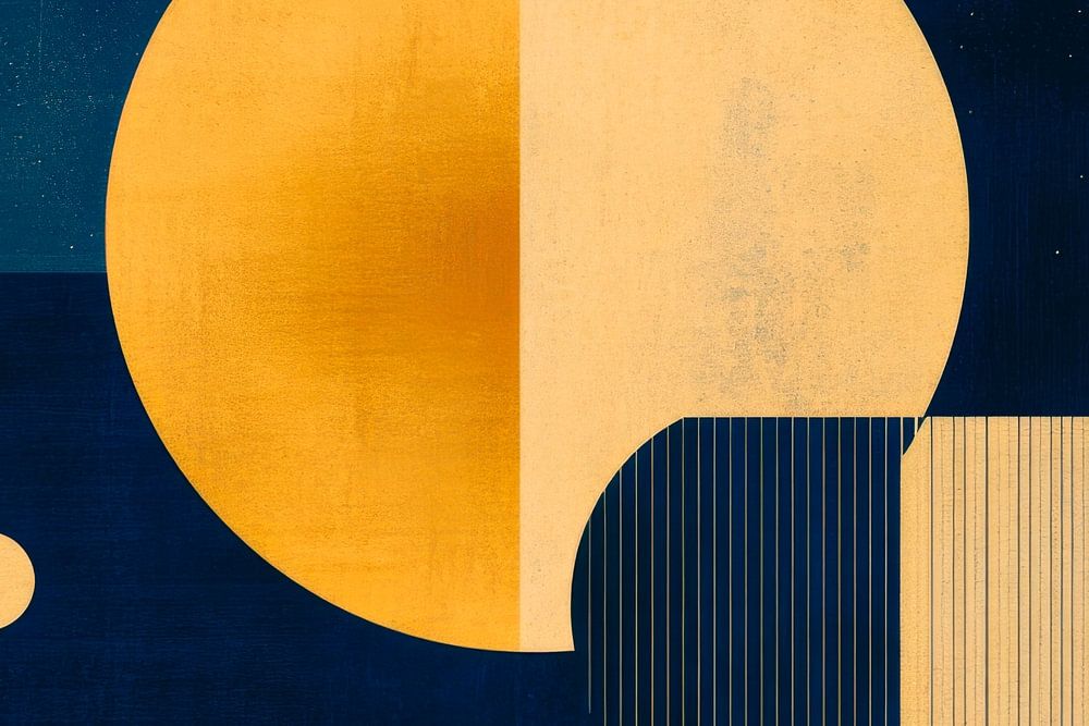 In einer harmonischen Komposition aus tiefem Blau und strahlendem Gold entfalten sich geometrische Formen, die die Blicke magisch anziehen. Die gekonnten Kontraste zwischen runden und geraden Linien verleihen dem Raum eine moderne Eleganz. Ideal für das Wohnzimmer, schafft dieses Kunstwerk eine einladende Atmosphäre, die zum Verweilen einlädt.
