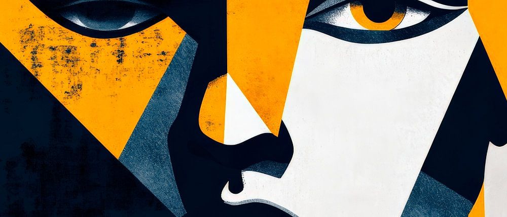 Bestelle dieses Porträt Geometrisches Porträt in Gelb und Schwarz von Poster Art Shop als Reproduktion auf Leinwand, Alu-Dibond, als Poster, Fototapete oder Acrylglasbild.