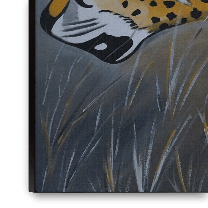Langsam schleicht sich der Gepard an seine Beute heran. Jederzeit zum Sprung bereit, wartet er auf den günstigsten Moment. Acryl auf Leinwand.