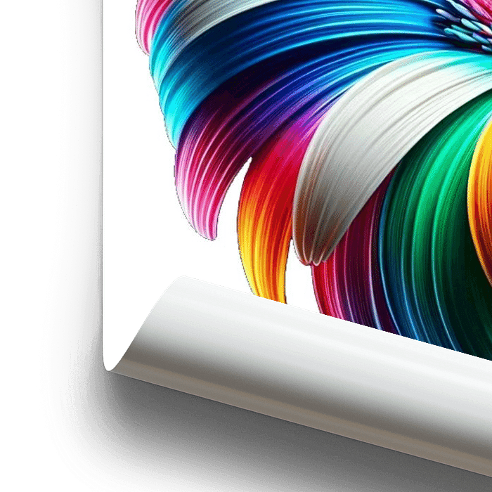 Das Bild zeigt eine atemberaubend bunte und stilisierte Darstellung einer Gerbera-Gänseblümchen-Blüte. Die Blütenblätter sind in einem faszinierenden Spektrum von Regenbogenfarben gestaltet, die von leuchtendem Rot und Orange über kräftiges Blau und Grün bis hin zu sanftem Weiß und Violett reichen. Die feinen, wellenartigen Strukturen der Blütenblätter verleihen der Blume ein dreidimensionales und lebendiges Aussehen, das den Betrachter sofort in seinen Bann zieht.