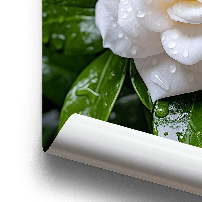 Die Gardenie ist mit ihrer zeitlosen Eleganz und ihrem betörenden Duft ein wahres Wunderwerk der Natur. Ihre ästhetische Schönheit ist ein wahrer Augenschmaus. Die samtigen, cremeweißen Blütenblätter sind perfekt vor einem Hintergrund aus üppigen, glänzend grünen Blättern angeordnet. Dieser auffällige Kontrast schafft ein visuelles Meisterwerk, das die Sinne fesselt.