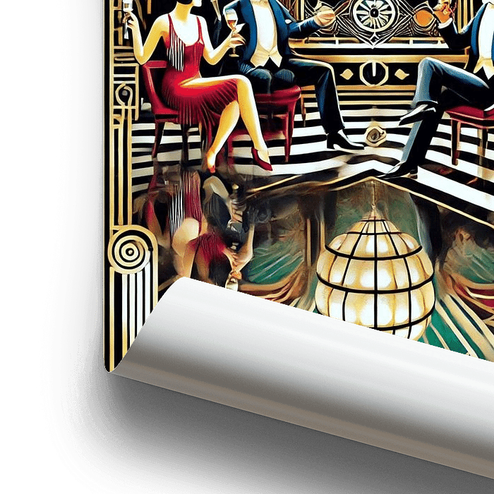 Die dargestellte Szenerie spiegelt die Roaring Twenties wider – eine Zeit des gesellschaftlichen Aufbruchs, in der Jazz, Charleston und Cocktails das Nachtleben prägten. Bars und Tanzlokale waren Treffpunkte für Kreative, Künstler, Unternehmer und Lebenskünstler. Das Motiv lädt den Betrachter ein, Teil dieses pulsierenden Lebensgefühls zu werden.