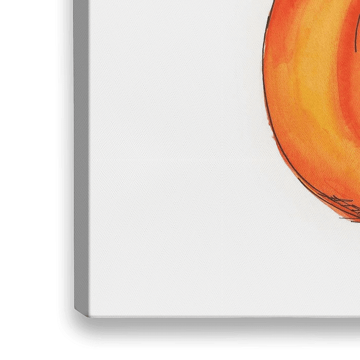 Glücklicher Kürbis ist ein Aquarellgemälde im Querformat gemalt von der Künstlerin Karen Kaspar. Ein Halloweenkürbis in leuchtendem Orange lächelt freundlich und glücklich den Betrachter an. Der Hintergrund ist weiß belassen. Happy Halloween!