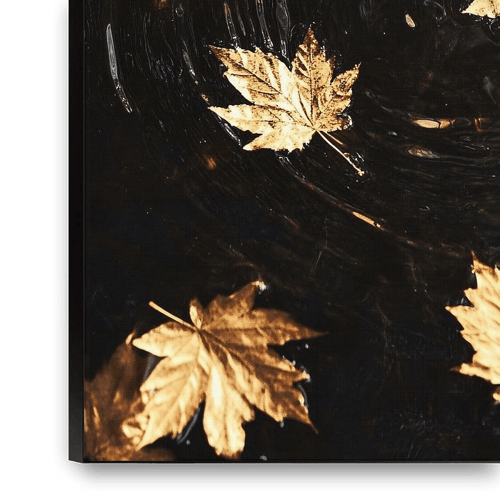 Lassen Sie sich von der Schönheit des Herbstes mit diesem bezaubernden Design aus goldenen Blättern, die auf dunklem Wasser schwimmen, verzaubern. Die satten, warmen Farbtöne der Blätter bilden einen schönen Kontrast zu dem tiefen, dunklen Hintergrund, der ein Gefühl von Ruhe und Einfachheit vermittelt. Perfekt für alle, die die Natur…