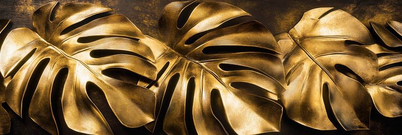 In schimmerndem Gold strahlen die kunstvoll gestalteten Monstera-Blätter eine elegante Prise Tropenfeeling aus. Ihre geschwungenen Formen und markanten Einschnitte verleihen der Komposition ein Gefühl von Bewegung und Lebendigkeit. Der sanfte Kontrast zu einem dunkel gehaltenen Hintergrund verstärkt die luxuriöse Ausstrahlung und lädt…