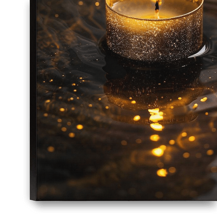 Über „Goldene Kerze Reflexion auf dunklem Wasser“ von Art & Soul Creations