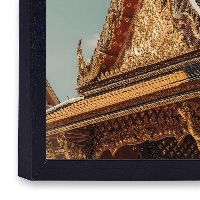 Das Foto fängt die prachtvollen Details eines traditionellen thailändischen Tempeldachs ein. Die kunstvoll vergoldeten Ornamente, die geschwungenen Linien und die eleganten Mosaiksteine sind charakteristisch für buddhistische Tempel in Chiang Mai oder Bangkok. Die Dachspitzen winden sich in den Himmel und symbolisieren Schutz, spirituelle Erhebung und die reiche kulturelle Geschichte Thailands. Die intensiven Farben, von Gold bis Terrakotta, stehen für Reinheit und Erleuchtung. Dieses Bild spricht Liebhaber asiatischer Architektur, Tradition, Religion und Handwerkskunst an und bringt den Zauber fernöstlicher Baukunst direkt nach Hause. Im Raum verströmt dieses Motiv Ruhe, Ehrfurcht und die Faszination für Detail und Symbolik. Es eignet sich hervorragend für die Gestaltung eines inspirierenden Arbeitsplatzes, eines Meditationsbereichs oder als Akzent in modernen Wohnräumen, wenn Eleganz und Exotik gefragt sind.