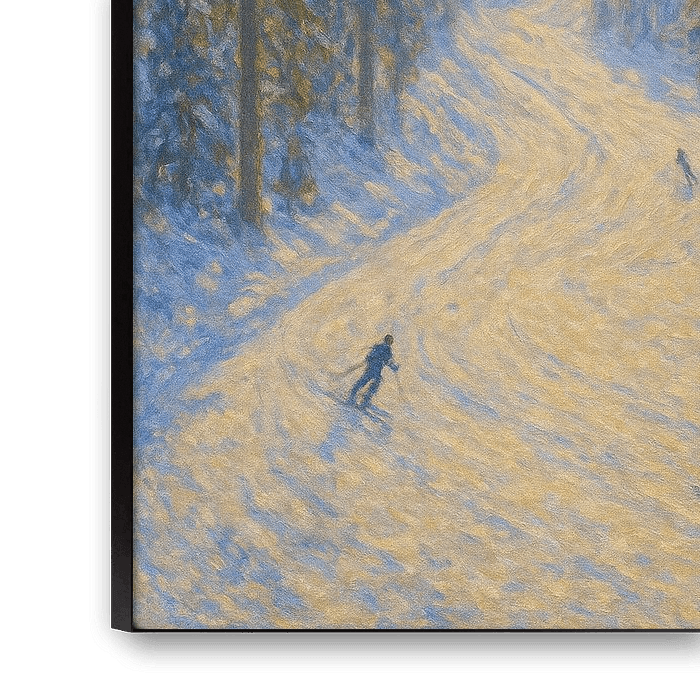 Dieser Kunstdruck eignet sich perfekt für moderne alpine Häuser, Skihütten oder dynamische Innenräume, die ein Gleichgewicht zwischen Energie und Gelassenheit schätzen. Es passt wunderbar über einen Kamin, in ein Familienzimmer oder sogar in einen kreativen Arbeitsbereich, wo Inspiration und Ruhe gefragt sind. Aufgrund seines von Monet inspirierten Ansatzes geht das Bild über die bloße Darstellung hinaus - es wird zu einem Gefühl, einer Erinnerung, einem in der Stille eingefangenen Licht. Wählen Sie diesen Druck, wenn Ihre Wanddekoration nicht nur die Winterlandschaft, sondern auch den Geist des Winters widerspiegeln soll: Bewegung, Freude, Licht, Klarheit. Das Ergebnis ist ein raffiniertes, impressionistisches Statement in Ihrer Einrichtung - ein Gesprächsstoff und eine Quelle friedlicher Dynamik.