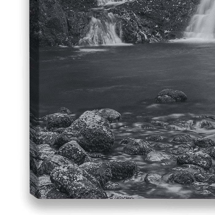 Ein Schwarz-Weiß-Foto im Format 16:9 vom Gollinger Wasserfall (auch Gollingfall oder Schwarzbachfall genannt), einem der schönsten Wasserfälle Österreichs, bei Golling an der Salzach im Salzburger Land.