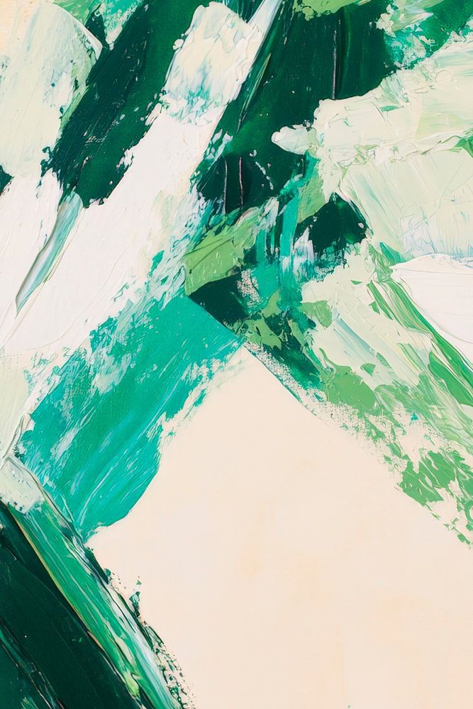 In sanften Grüntönen entfaltet sich ein dynamisches Spiel aus kräftigen Pinselstrichen und sanften Flächen. Die harmonische Balance zwischen Bewegung und Ruhe liefert eine erfrischende Atmosphäre, ideal für eine Küche oder ein Wohnzimmer. Hier wird Naturverbundenheit spürbar und lädt zum Verweilen und Genießen ein.