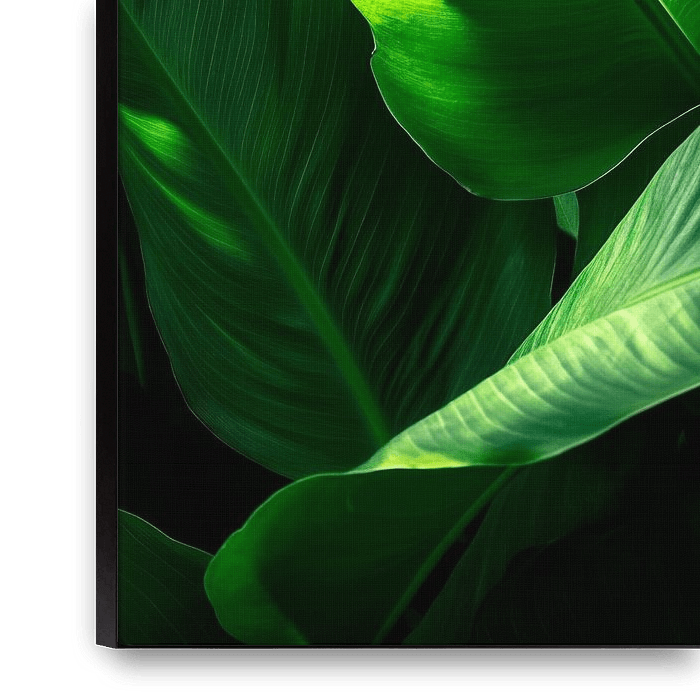 Ein üppiges Blättermeer strahlt in verschiedenen Grüntönen, das Sonnenlicht schimmert sanft auf den glänzenden Oberflächen. Die einzelnen Blätter, in harmonischen Wellen angeordnet, verleihen dem Zusammenspiel von Licht und Schatten ein faszinierendes Gefühl von Lebendigkeit und Tiefe. Diese Tropenpracht vermittelt ein Gefühl von Ruhe…