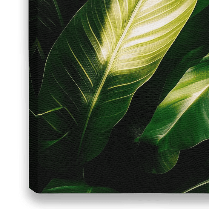 Ein üppiges Blättermeer entfaltet sich, in dem satte Grüntöne harmonisch miteinander spielen. Das sanfte Licht tanzt über die glänzenden Oberflächen der Blätter und hebt ihre filigranen Adern hervor. Die lebendige Textur und die unterschiedliche Form der Blätter erzeugen eine einladende, tropische Atmosphäre, die zur Entspannung und zum…