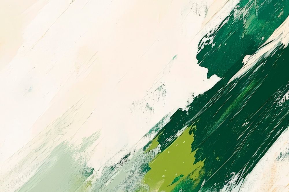 Ein dynamisches Spiel aus sanften Grüntönen und cremigen Akzenten, das wie ein frischer Frühlingsmorgen wirkt. Die lebhaften Pinselstriche verleihen dem Raum eine wache Energie und schaffen eine einladende Atmosphäre. Ideal für die Küche, wo Inspiration und Kreativität im kulinarischen Schaffen fließen können.
