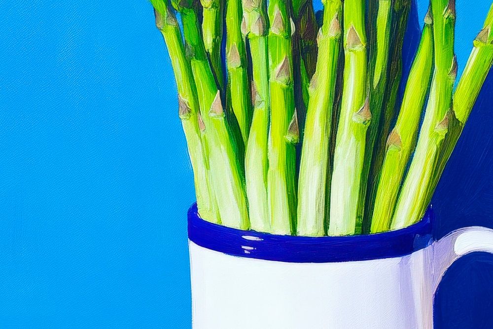 Frisch und lebendig erblüht der zarte, grüne Spargel in einer einladenden, weißen Tasse. Sein strahlendes Farbenspiel auf dem tiefblauen Hintergrund verleiht jedem Raum eine Prise Freude. Ideal für die Küche oder das Esszimmer, wo er kulinarische Inspiration und einen Hauch von Natur inszeniert. Ein Baudenkmal der sommerlichen Frische!