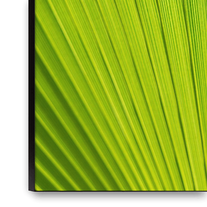 Bestelle das Foto Grünes Palmblatt und mediterranes Sonnenlicht von Adriana Mueller als Reproduktion auf Leinwand, Alu-Dibond, als Poster, Fototapete oder Acrylglasbild.