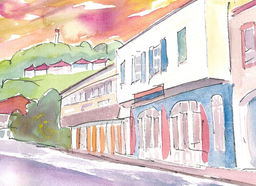 Gustavia St Barts Straßenszene bei Sonnenuntergang