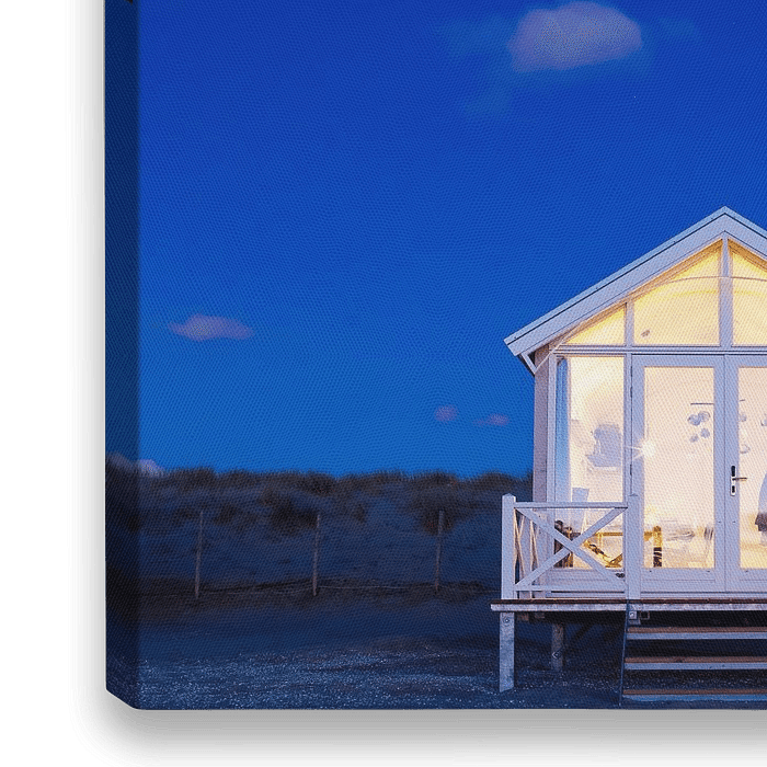 Bestelle das Foto Haager Strandhaus bei Mondlicht von Maurice Haak als Reproduktion auf Leinwand, Alu-Dibond, als Poster, Fototapete oder Acrylglasbild.