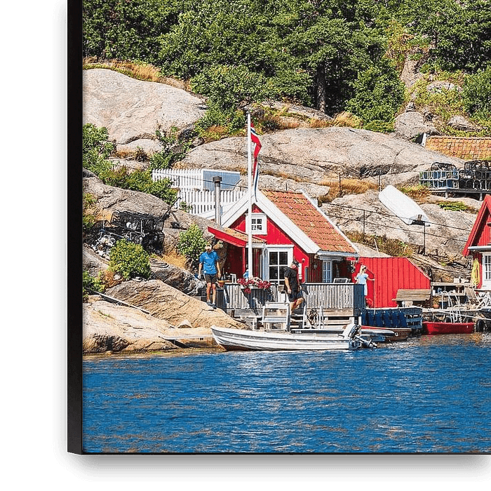 Bestelle das Foto Häuser auf der Schäreninsel Kapelløya in Norwegen von Rico Ködder als Reproduktion auf Leinwand, Alu-Dibond, als Poster, Fototapete oder Acrylglasbild.
