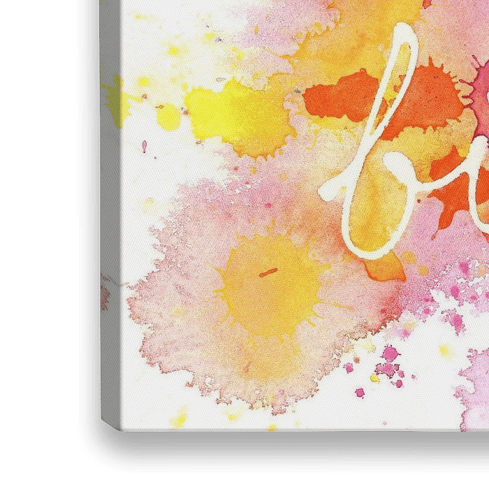 Lebhafter Spritzer bunter Aquarellfarben bilden einen lebendigen Hintergrund in Regenbogenfarben, auf dem die Worte „Happy Birthday“ elegant in Weiß von Hand geschrieben ist. Die Spritzer wirken zufällig und ergeben dennoch eine harmonische und fröhliche Komposition. Dieses farbenfrohe, inspirierende Aquarellgemälde wurde von der Künstlerin Karen Kaspar handgemalt.