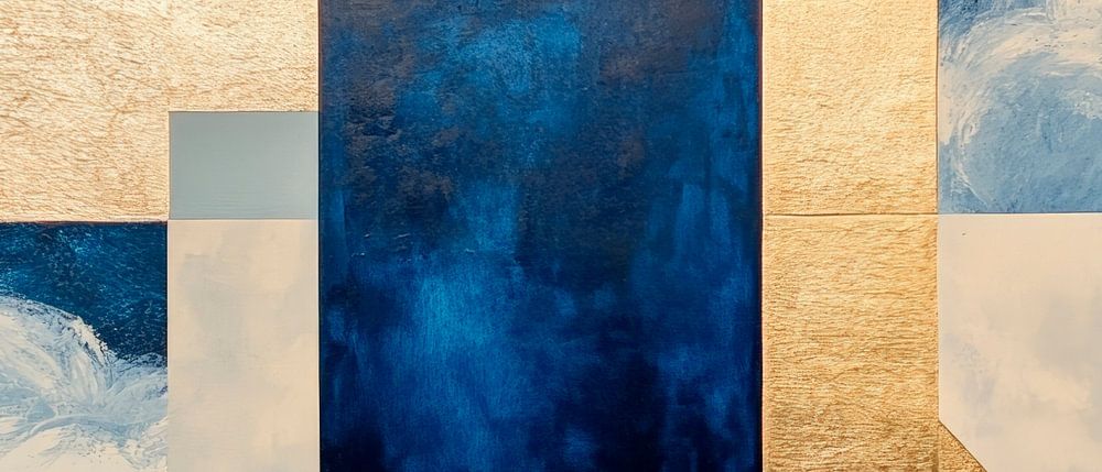 Ein faszinierendes Zusammenspiel von tiefen Blautönen, leuchtendem Gold und sanften Wolkenmotiven entfaltet sich in dieser Komposition. Die strukturierten Flächen und das harmonische Gleichgewicht schaffen eine meditative Atmosphäre. Ideal für das Wohnzimmer, lädt es zum Verweilen und Entspannen ein, während es gleichzeitig einen modernen Akzent setzt.