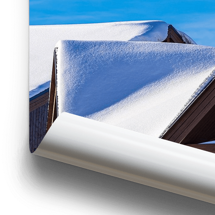 Bestelle das Foto Haus mit Schnee auf dem Dach im Winter in Ruka, Finnland von Rico Ködder als Reproduktion auf Leinwand, Alu-Dibond, als Poster, Fototapete oder Acrylglasbild.