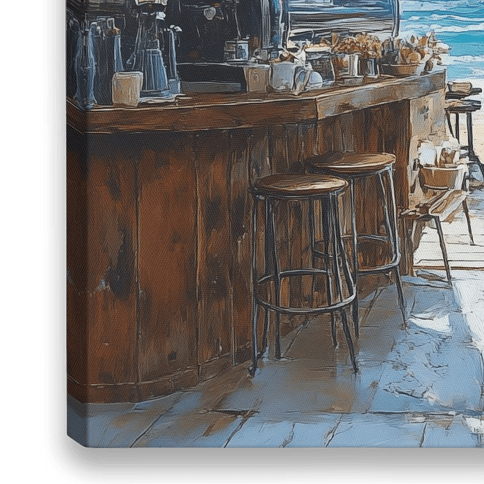 Dieses Hawaii-Bar-Kunstgemälde fängt die Essenz des exotischen Insellebens ein, wo ein warmer Ort, sanfte Musik und bunte Cocktails in einer lebhaften Strandbar zusammenkommen. Das Kunstwerk strahlt ein künstlerisches Flair aus, mit verspielten Formen, ausdrucksstarken Pinselstrichen und einer warmen, einladenden Komposition.