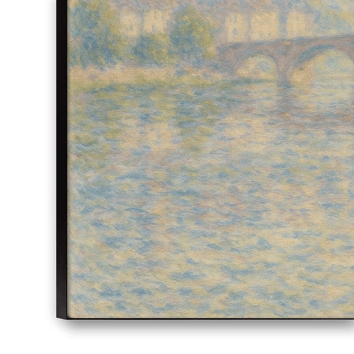 Dieses Kunstwerk fängt das stille Wunder der Morgendämmerung in einer historischen Stadt ein. Die blassen Blau- und Rottöne deuten auf den Beginn des Tages und der Erinnerung hin, wo sich Klarheit und Traum überschneiden. Die Komposition zieht den Betrachter vom plätschernden Wasser zur schwachen Silhouette des Schlosses hinauf - eine Reise durch Raum und Atmosphäre, die fast spirituell wirkt.