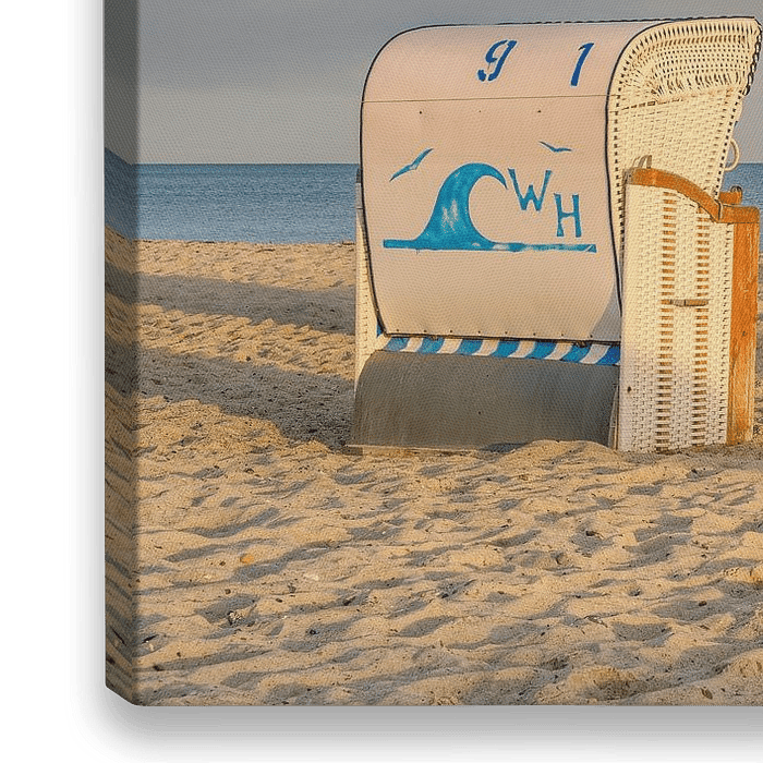 Morgens am Strand von Heiligenhafen an der Ostsee mit Blick zur Riesenschaukel im Meer.