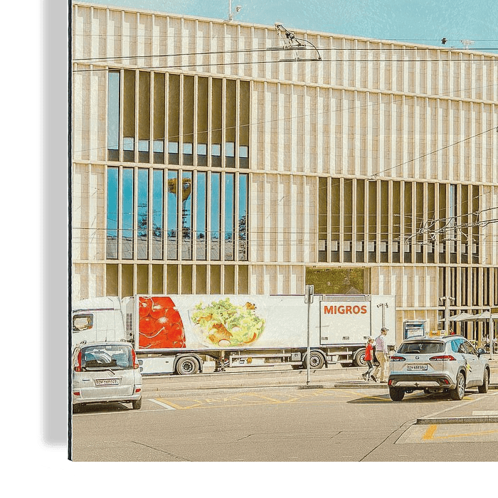 Diese eindrucksvolle Fotografie zeigt die Lebendigkeit Zürichs mit einem Blick auf den farbenfrohen Mastkopt vor dem Kunsthaus Zürich. Die sanften Blautöne des Himmels schaffen eine ruhige Atmosphäre, die den Betrachter einlädt, in die Szene einzutauchen. Die Komposition vermittelt ein Gefühl von urbaner Gelassenheit und ist perfekt…