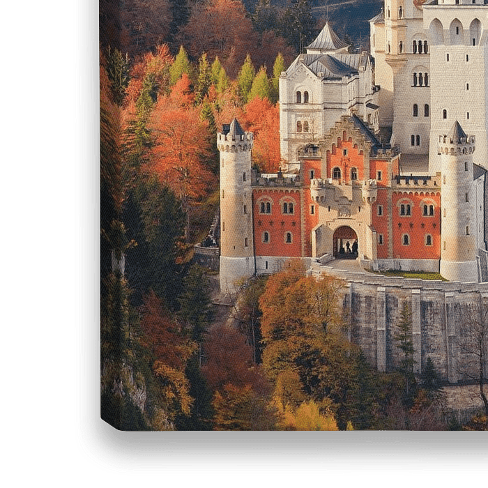 Das Schloss Neuschwanstein ist ein romanisches Renaissance-Schloss aus dem 19. Jahrhundert auf einem zerklüfteten Hügel über dem Dorf Hohenschwangau bei Füssen im Südwesten Bayerns.