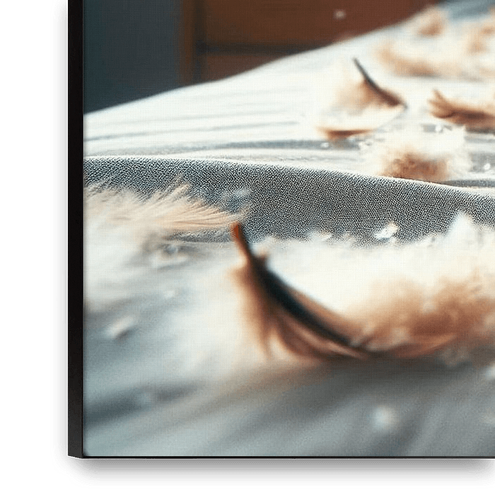 Dieses Bild vermittelt eine gemütliche Herbststimmung, in der eine flauschige Perserkatze der unbestrittene Star ist. Umgeben von einer Wolke aus Federn, die sich scheinbar in einem unachtsamen Moment über das Bett ergossen hat, liegt die Katze da, ihr Blick ein Gemisch aus Unschuld und verschmitzter Schuld. Das warme Licht des…