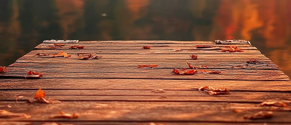 Ein malerischer Holzsteg führt sanft in den ruhigen See, umrahmt von warmen Herbstfarben, die eine friedliche Atmosphäre schaffen. Die spiegelnde Wasseroberfläche und die fallenden Blätter erzeugen eine harmonische Balance zwischen Natur und Ruhe. Perfekt für das Wohnzimmer, um eine entspannende Wohlfühl-Oase zu schaffen.