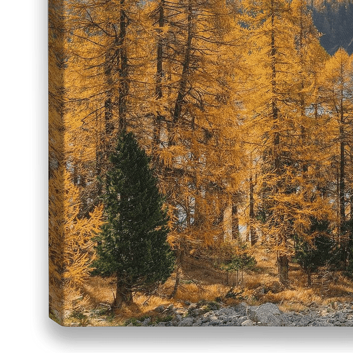 Ein wunderschöner Herbsttag am Silsersee im Oberengadin im Kanton Graubünden in der Schweiz. Die Sonne bringt die herbstlich gefärbten Lärchen zum Leuchten, im Hintergrund ist der Piz da la Margna zu sehen.