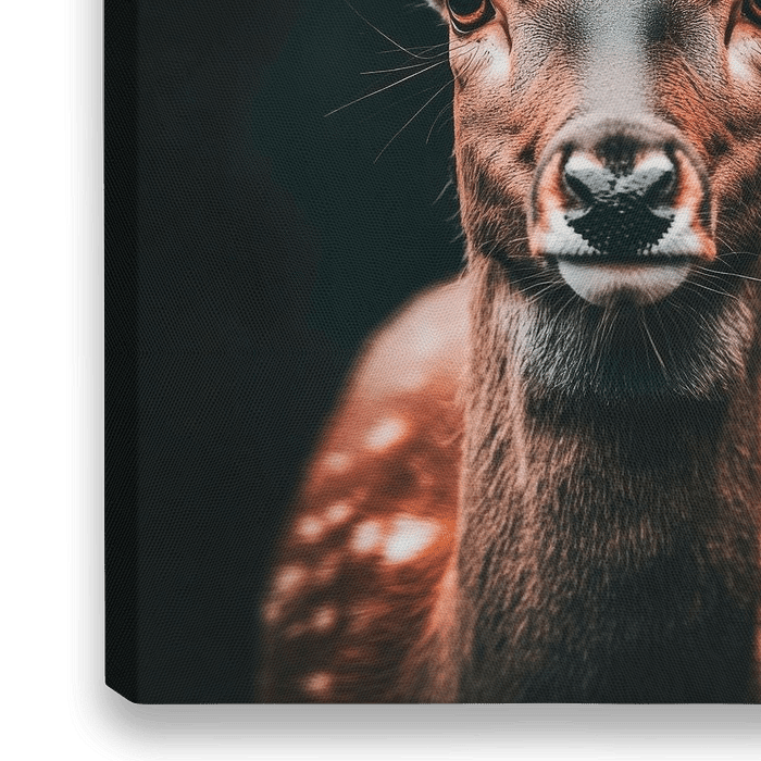 Mit seinen majestätischen Augen und den anmutigen, verzweigten Geweihen strahlt dieses Reh eine Ruhe und Eleganz aus, die beeindruckt. Die harmonischen Erdtöne und der dunkle Hintergrund verleihen dem Bild eine zeitlose Schönheit, die perfekt in ein Wohnzimmer oder eine Leseecke passt, wo es als Blickfang die Naturverbundenheit…