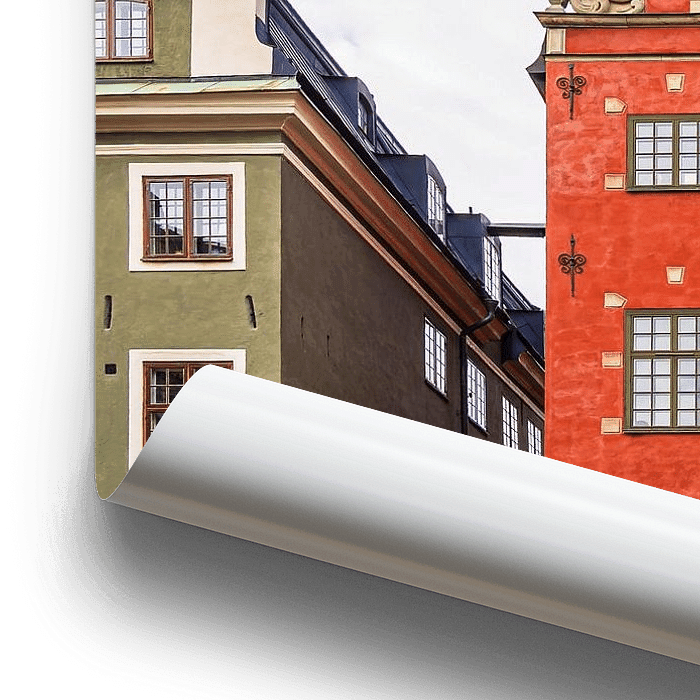 Bestelle das Foto Historische Gebäude in der Altstadt von Stockholm, Schweden von Rico Ködder als Reproduktion auf Leinwand, Alu-Dibond, als Poster, Fototapete oder Acrylglasbild.